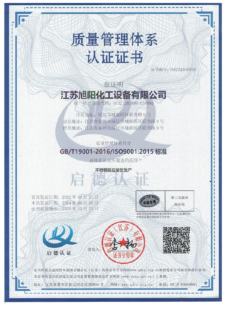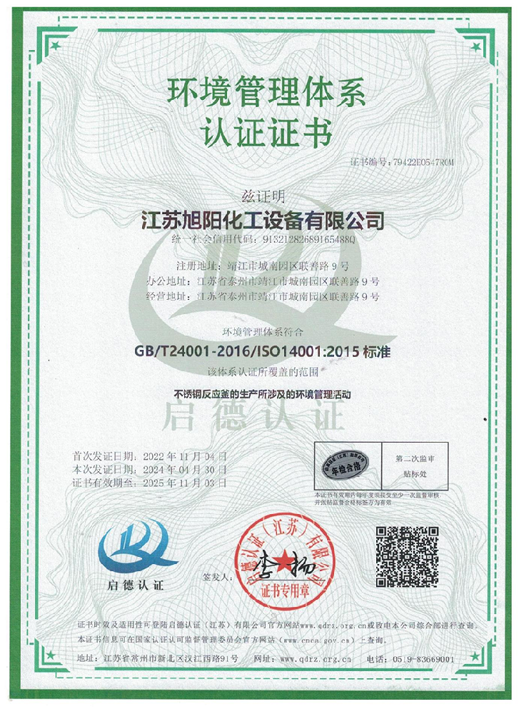 江蘇旭陽化工設(shè)備有限公司專業(yè)從事各類化工、環(huán)保、制藥、發(fā)酵、食品、新材料、鋰業(yè)等項目設(shè)計、制造及壓力容器的生產(chǎn)制造,是一家集研發(fā)、生產(chǎn)和進(jìn)出口貿(mào)易于一體的高科技企業(yè)。